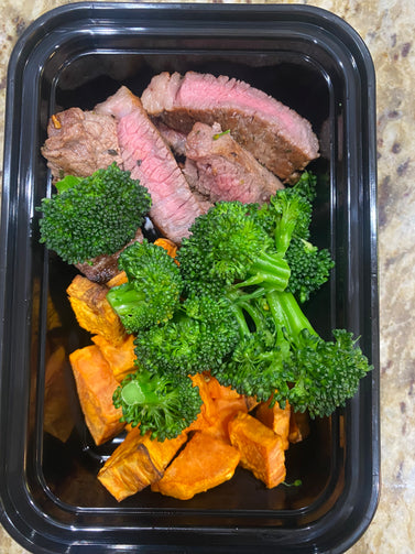 Your choice of Ground Turkey, Steak, or Shrimp served with Fingerling Potatoes and Veggies.